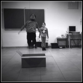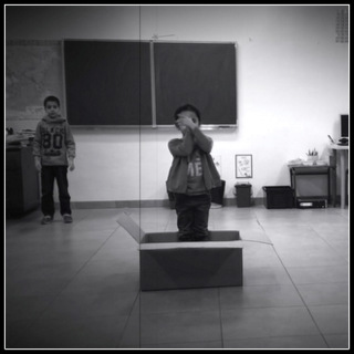 enfants apparaissent autour de la boîte mais