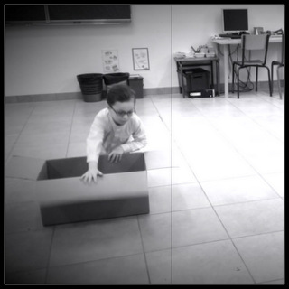 l'enfant de la boîte bondit et reste suspendue,