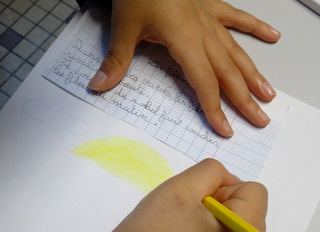 - Ecriture du poème en duo, un enfant