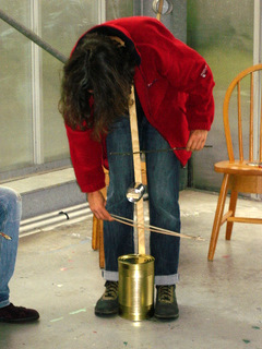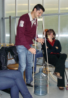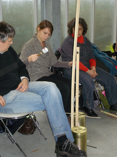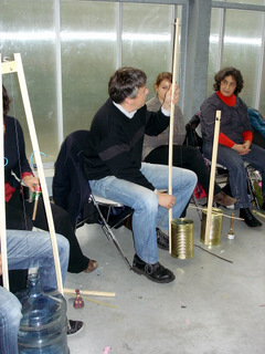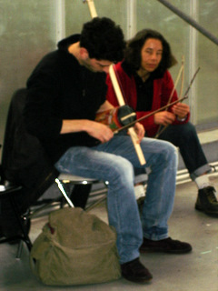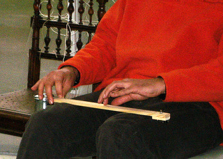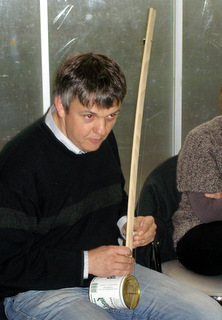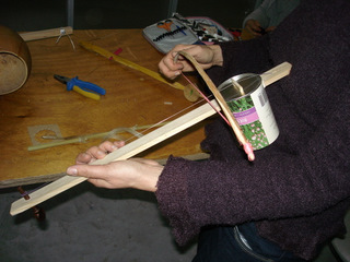 droite frotte l'autre partie avec un archet fait maison.