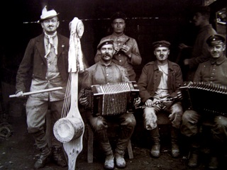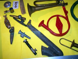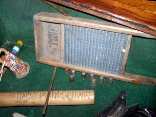 une corne, la planche à laver que l'on joue