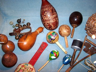 hochets divers, sistres, maracas, grelots, cloches,